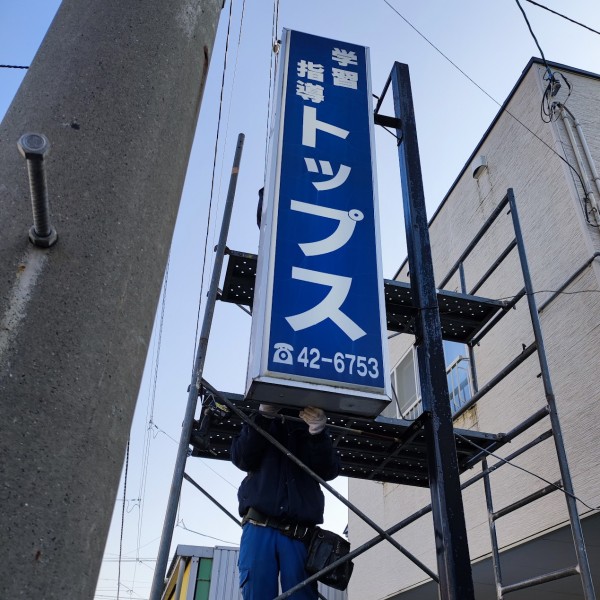 佃の学習塾様からの依頼で袖看板の、蛍光灯交換をしました。